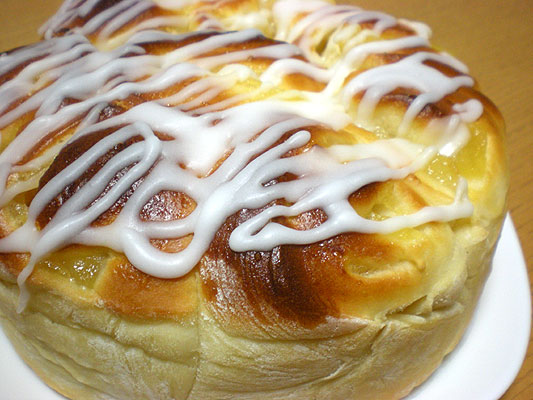 リンゴのパンはアップルパイ用に作ったフィリングを巻き込んで