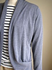 ![]() | ヒップ丈、フード付きで作りました。 起毛した温かみのある生地を使えば気軽なアウターになりますね。 アンゴラとモダールの接結であたたかそう。