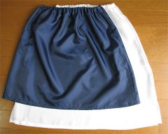 正面から。 前はひざ下くらいの丈ですが、後が長いので安心感があります。 裾はロック二つ折りなので、裏が見える部分はこんな感じです。 気になる場合は表と裏の色が同じ生地を使ってください。 |