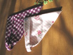 | おそろいの三角巾と。 三角巾は後ゴムでかんたんにかぶれるもので 無料型紙として配布しています。 (ダウンロード版のみ) | |||||