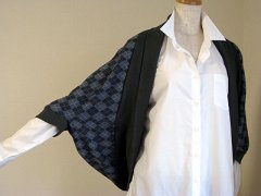 | 首にショールを掛けたような衿がいつのまにかポケットに・・・ 難しそうですが実際に縫ってみると見た目よりは簡単です。